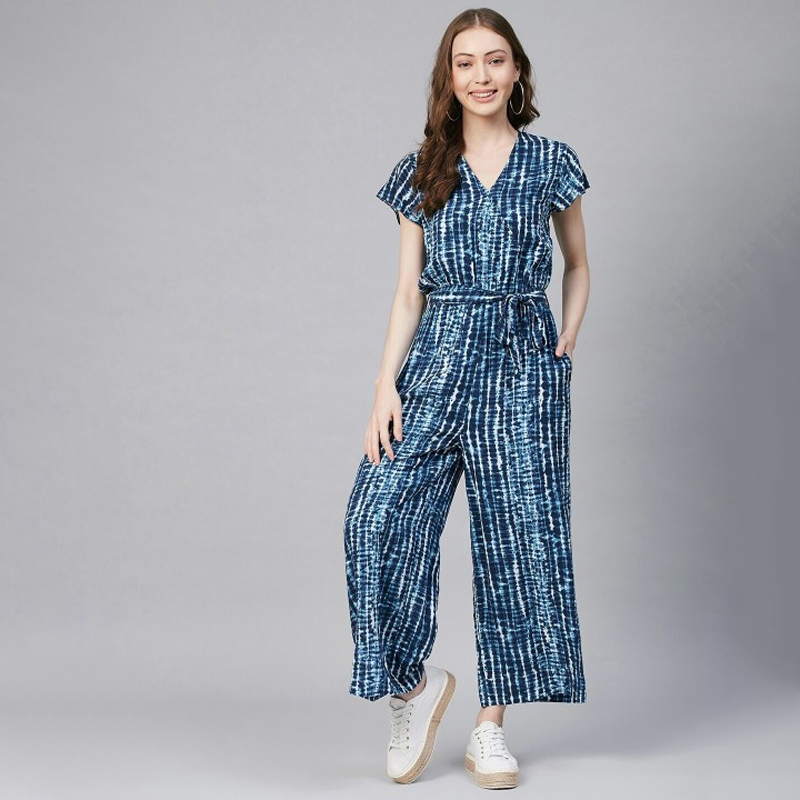 Closure:Concealed Zip Fabric:Viscose Rayon Neck:V-Neck Number of Items:1 Number of Pockets:2 Occasion:Casual Package Contains:1 jumpsuit Pattern:Printed